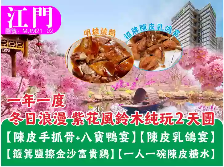 冬日浪漫 江門紫花風鈴木 美食2天純玩團