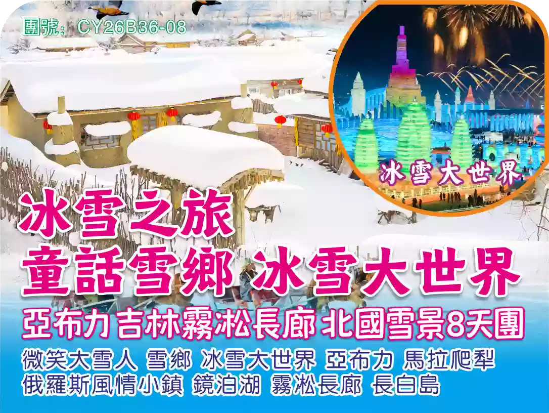 哈爾濱冰雪大世界 亞布力 雪鄉 吉林霧凇8天純玩團