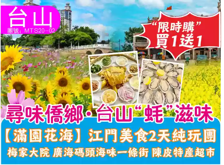 (買一送一)尋味台山蠔門盛宴 賞花2天純玩團