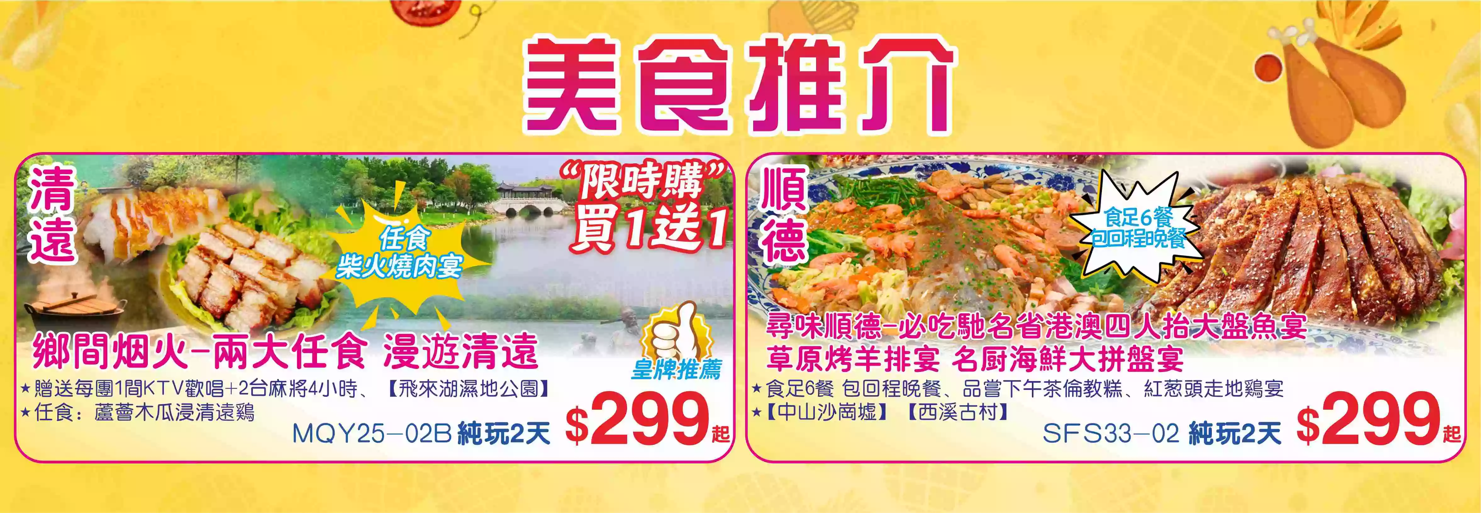 (買一送一)清遠兩大任食:柴火燒肉+蘆薈木瓜浸清遠鷄2天純玩團