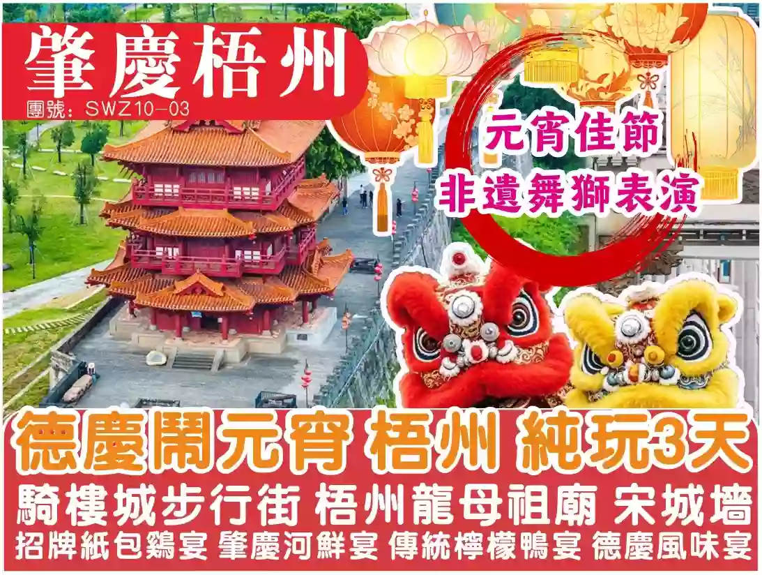 (元宵)德慶閙元宵炸獅子 梧州龍母廟 騎樓城步行街純玩3天團