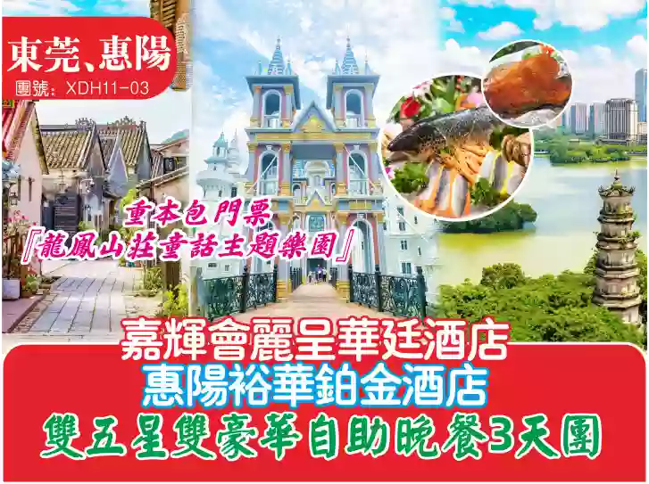 (新春加班線)東莞嘉輝會酒店+裕華鉑金雙五星自助晚餐3天純玩團