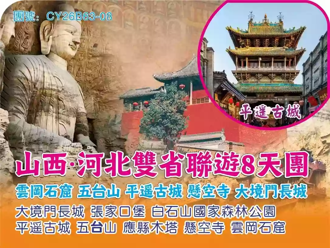 山西·河北兩省联遊8天團 雲岡石窟 五台山 平遙古城 懸空寺 大境門長城