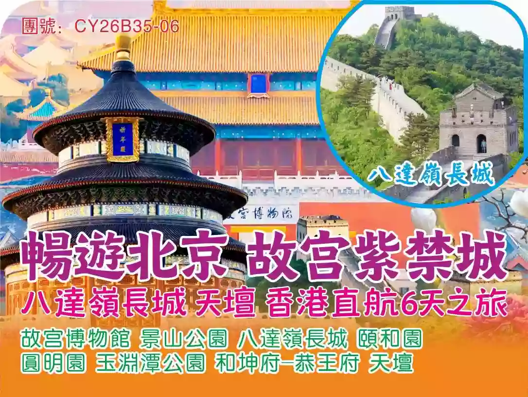 暢遊北京 故宮紫禁城 八達嶺長城天壇 6天直航團
