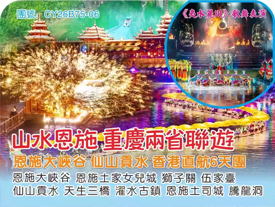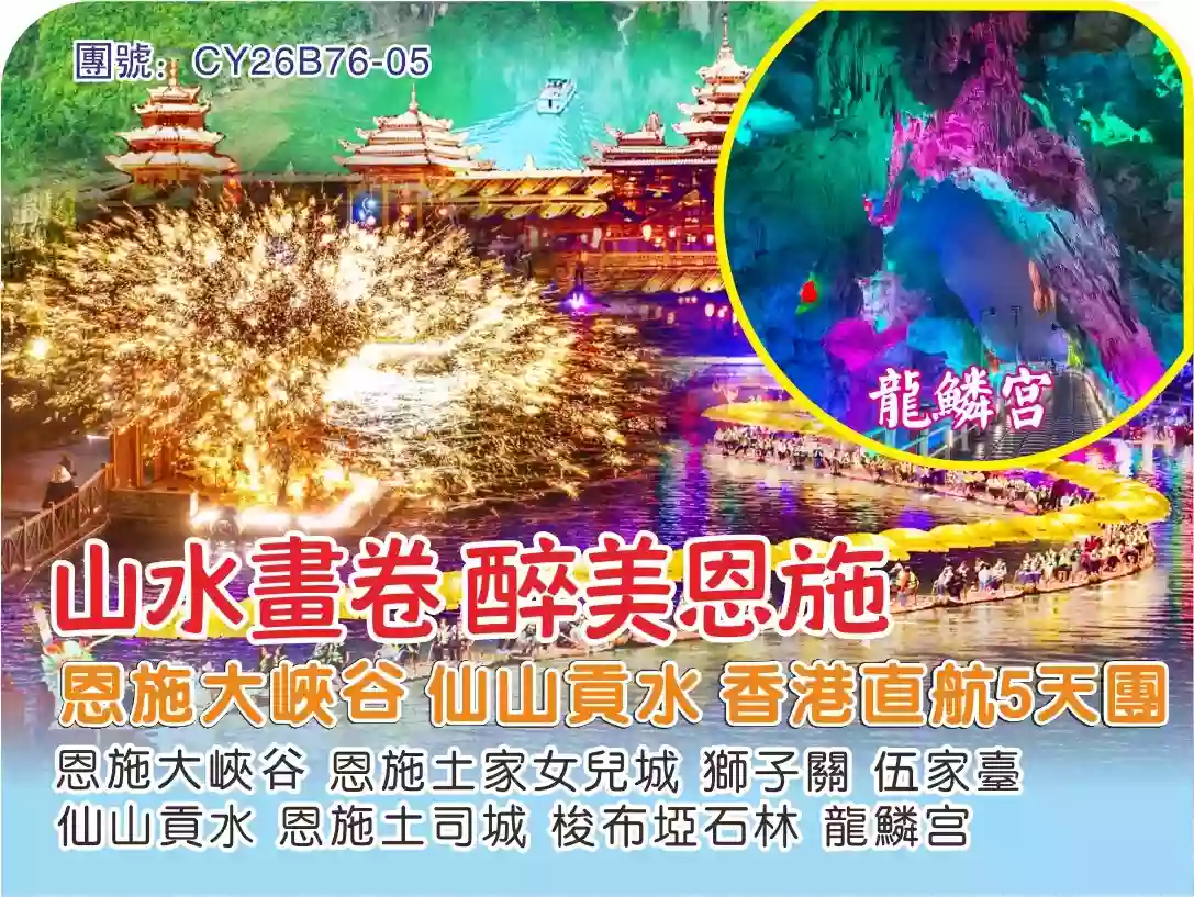 山水恩施 重庆两省联遊 恩施大峡谷 仙山贡水 香港直航6天团