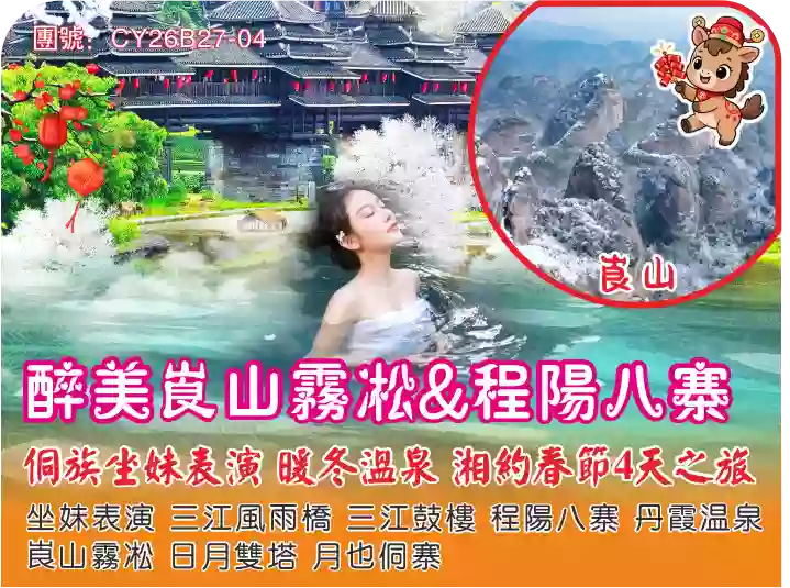 (春節)湖南崀山霧凇 侗族坐妹表演 五星溫泉4天直航團
