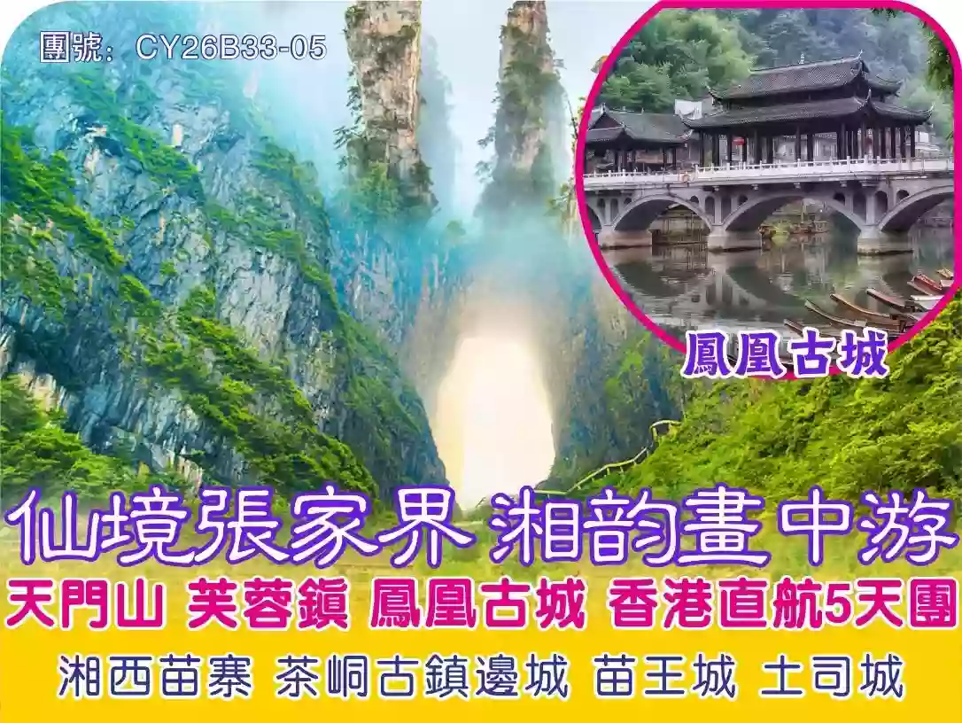 仙境張家界 湘韵畫中游 天門山 芙蓉鎭 鳳凰古城 香港直航5天團