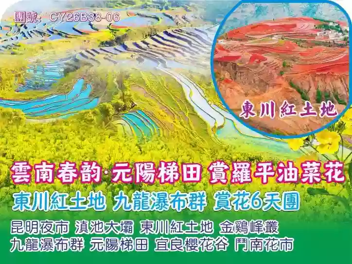雲南春韵·元陽梯田 賞羅平油菜花 東川紅土地 九龍瀑布群 賞花6天團