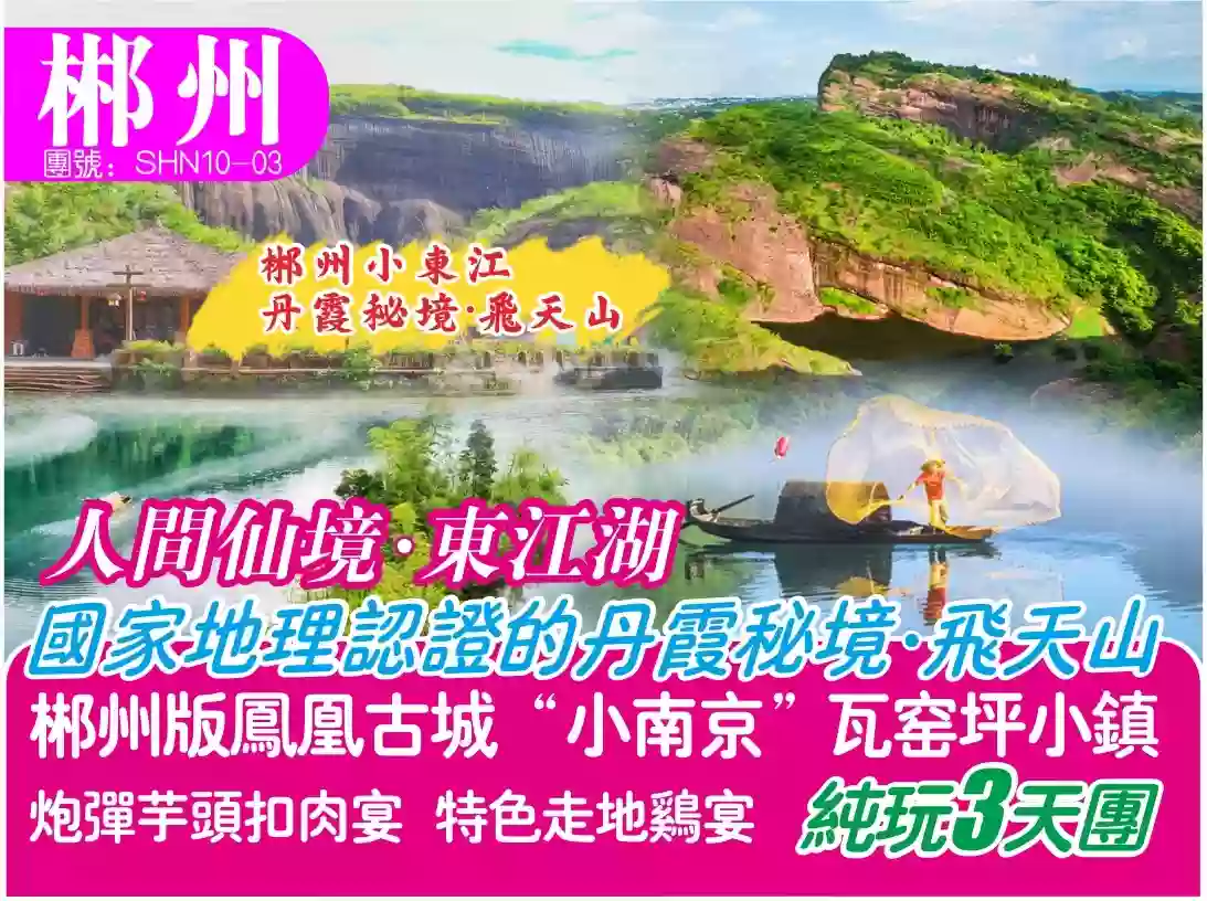 郴州東江湖.飛天山 裕后街3天巴士團