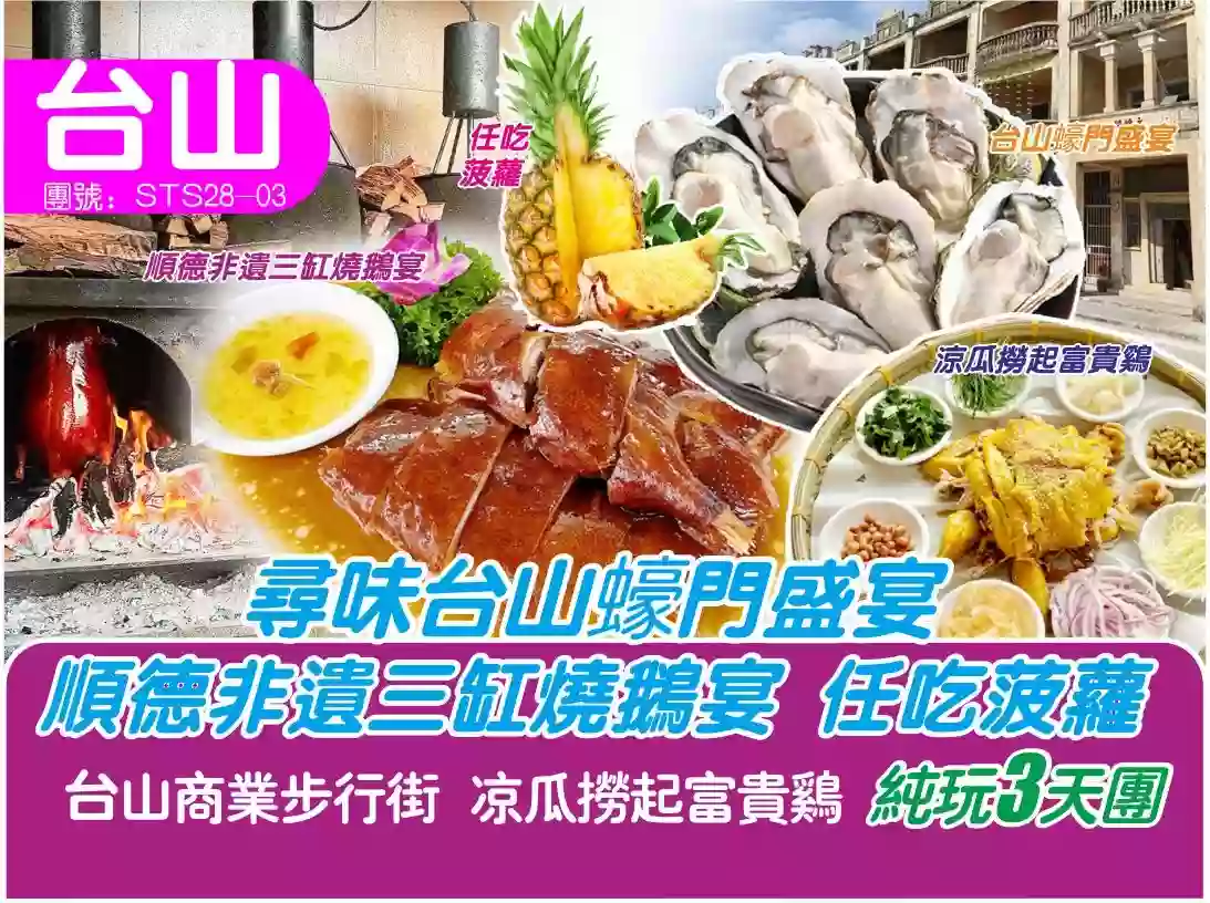 尋味台山蠔門盛宴 順德非遺三缸燒鵝 任吃菠蘿三天純玩團