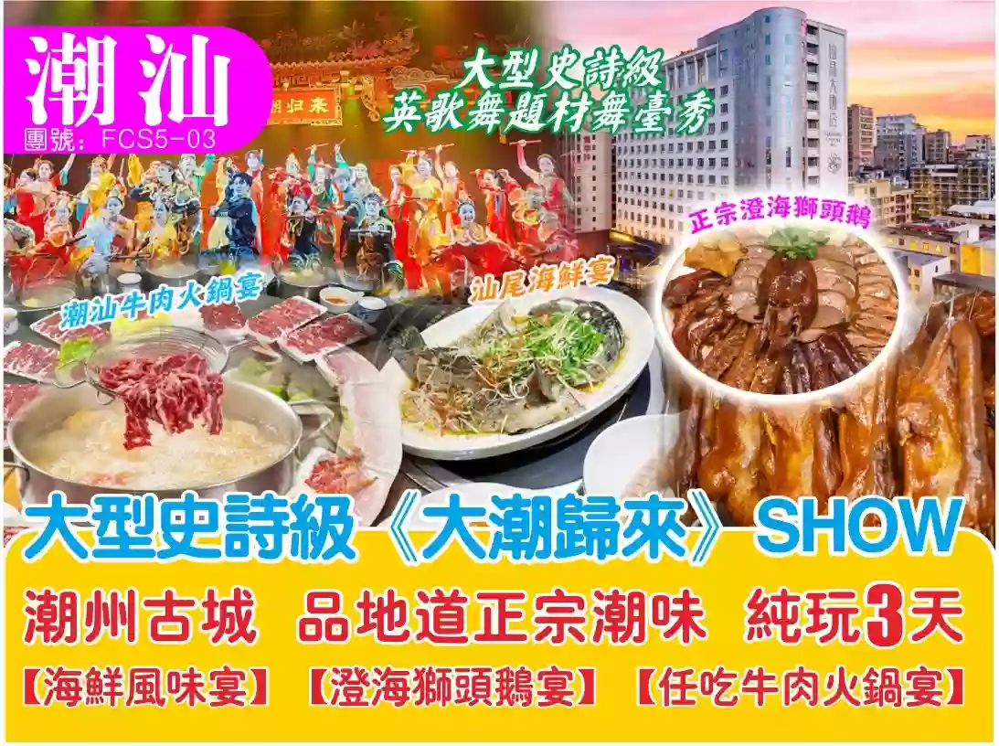 (復活)潮汕大型表演《大潮歸來》潮飲潮食純玩3天團